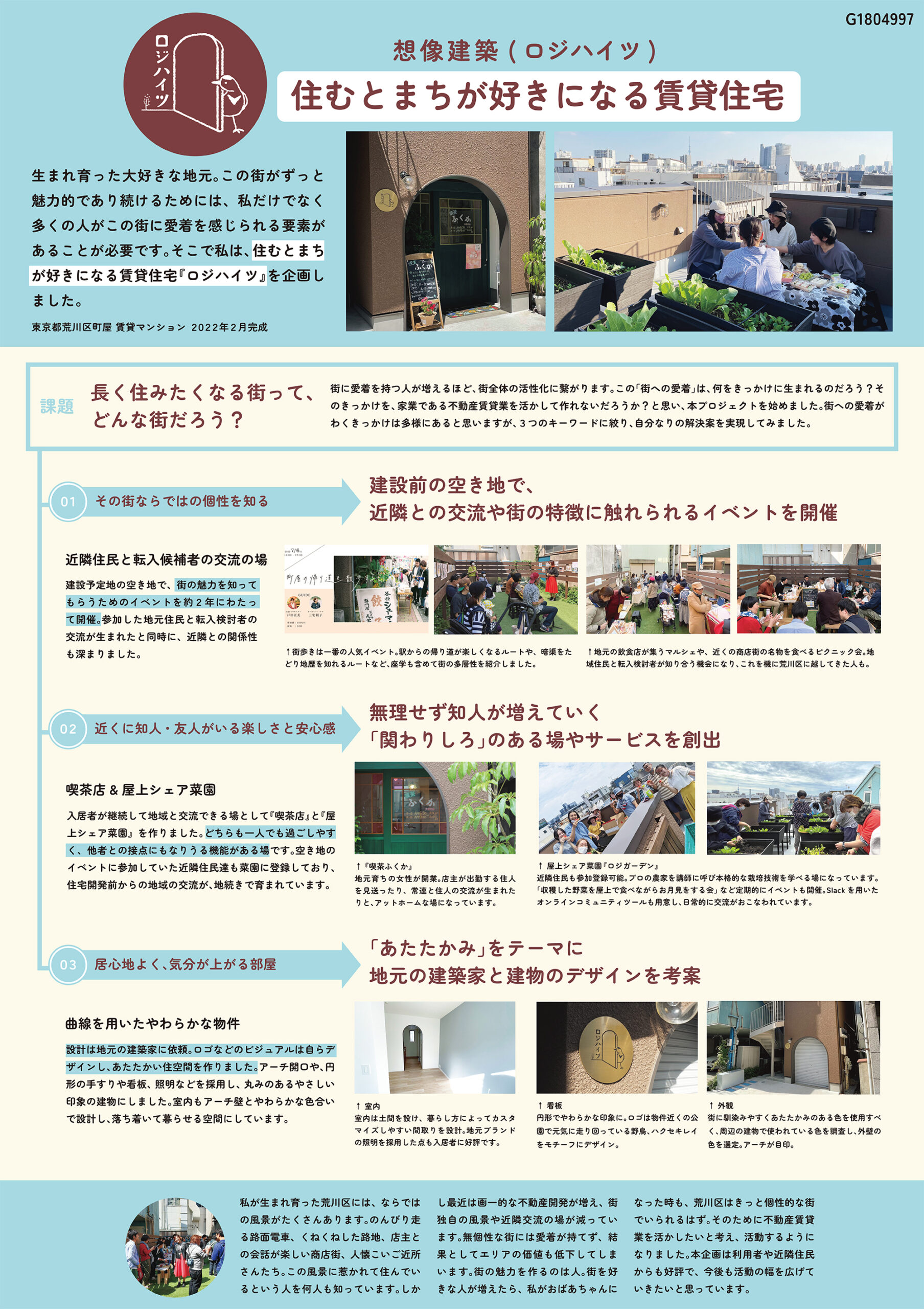 個人規模のプロジェクトなので応募することに正直悩みましたが、建築物単体ではなく「賃貸住宅が生まれる過程」を評価いただける賞はここしかない!と思いチャレンジしました。審査委員の方からのコメントがとても嬉しいです!